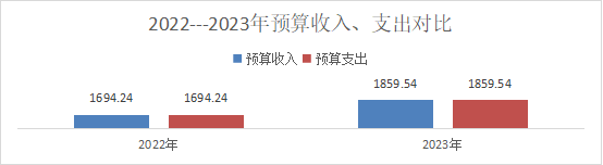2023年一般公共財政預算撥收入及一般公共服務預算支出為1859.54萬元與2022年一般公共財政預算收入及一般公共服務預算支出1694.24萬元,增長了9.76%。