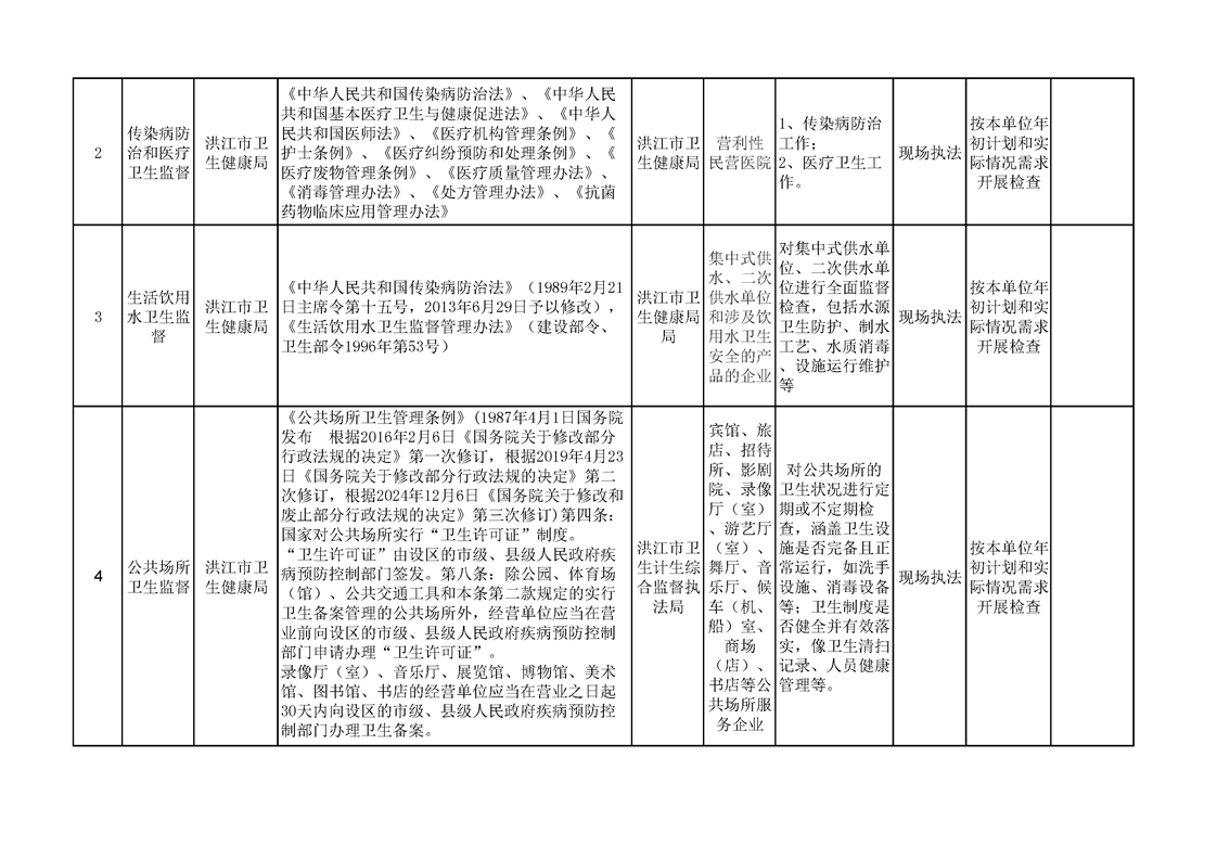 洪江市衛生健康局2025年度涉企行政檢查事項清單