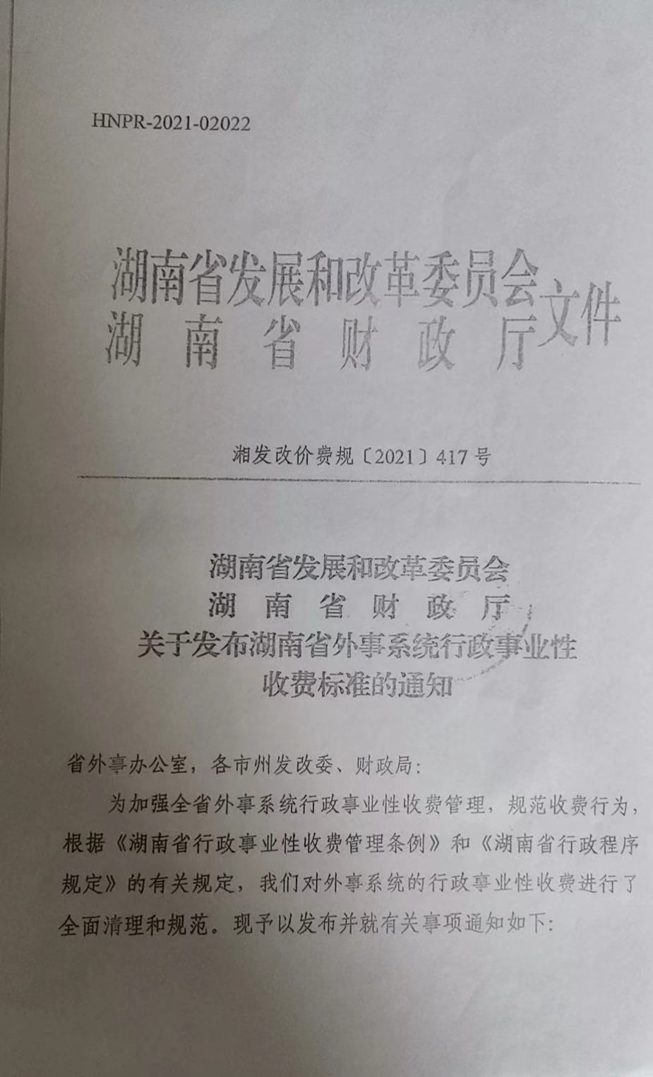 現將轉發《湖南省發展和改革委員會 湖南省財政廳關于發布湖南省外事系統行政事業性收費標準的通知》的通知(懷發改價費〔2021〕6號)文件轉發給你們,請認真遵照執行。
