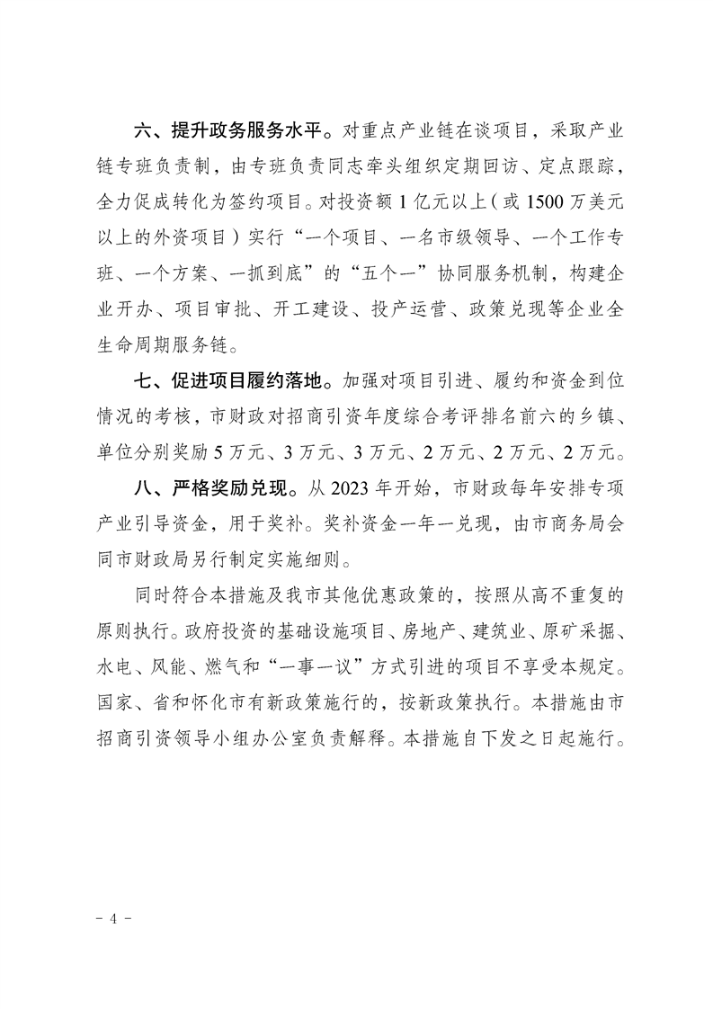 關于印發《洪江市關于進一步加強招商引資擴大開放的八條措施》的通知 洪招領辦〔2023〕1號