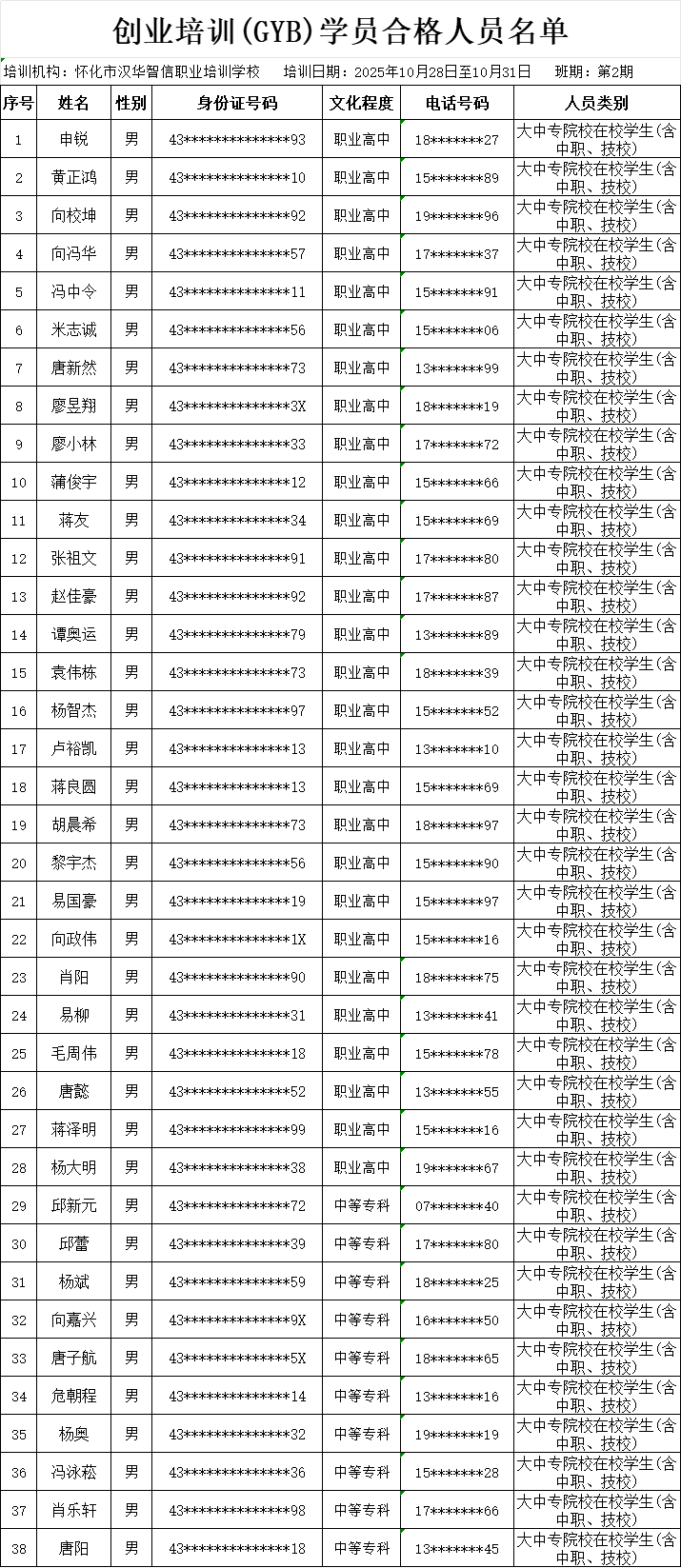 洪江創培2期合格人員名單(公示)