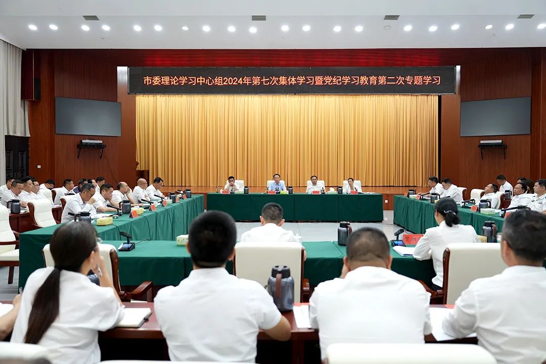 5月31日下午,市委理論學習中心組開展2024年第七次集體學習暨黨紀學習教育第二次專題學習,深入學習貫徹習近平總書記關于加強黨的紀律建設的重要論述精神,習近平總書記關于整治形式主義和官僚主義、為基層減負、應急管理、城市安全發展的重要論述。市委書記鄭小胡主持并作總結講話,他強調,要以更高站位深化認識、以更大力度深研細悟、以更嚴要求抓實重點,推動黨紀學習教育持續走深走實。市人大常委會黨組書記、主任謝景良,市政協黨組書記、主席左再良,市領導邱琳、楊晶輝等作交流發言。