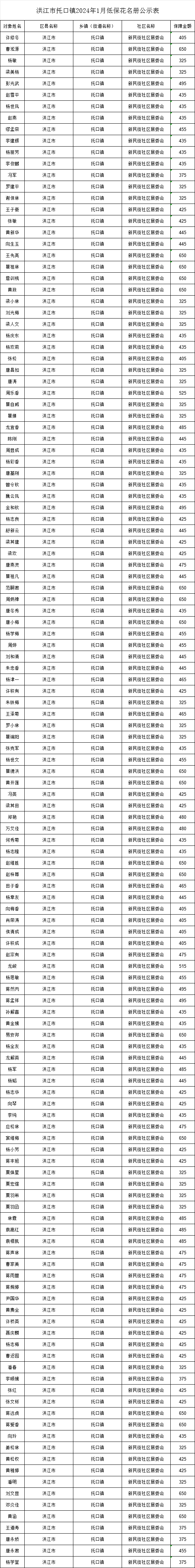 洪江市托口鎮2024年2月低保發放情況公示如下,因篇幅限制只顯示了城市低保發放表,詳情以附件形式附后,請自行下載查看。