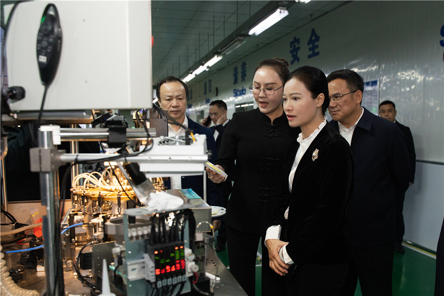 (10月26日,市委副書記、代市長韋朝暉在芷江調(diào)研。圖為韋朝暉在湖南華晟電通科技有限公司仔細了解全縣電子元器件產(chǎn)業(yè)鏈建設(shè)和企業(yè)生產(chǎn)經(jīng)營情況。懷化日報社全媒體記者 吳濤 攝)