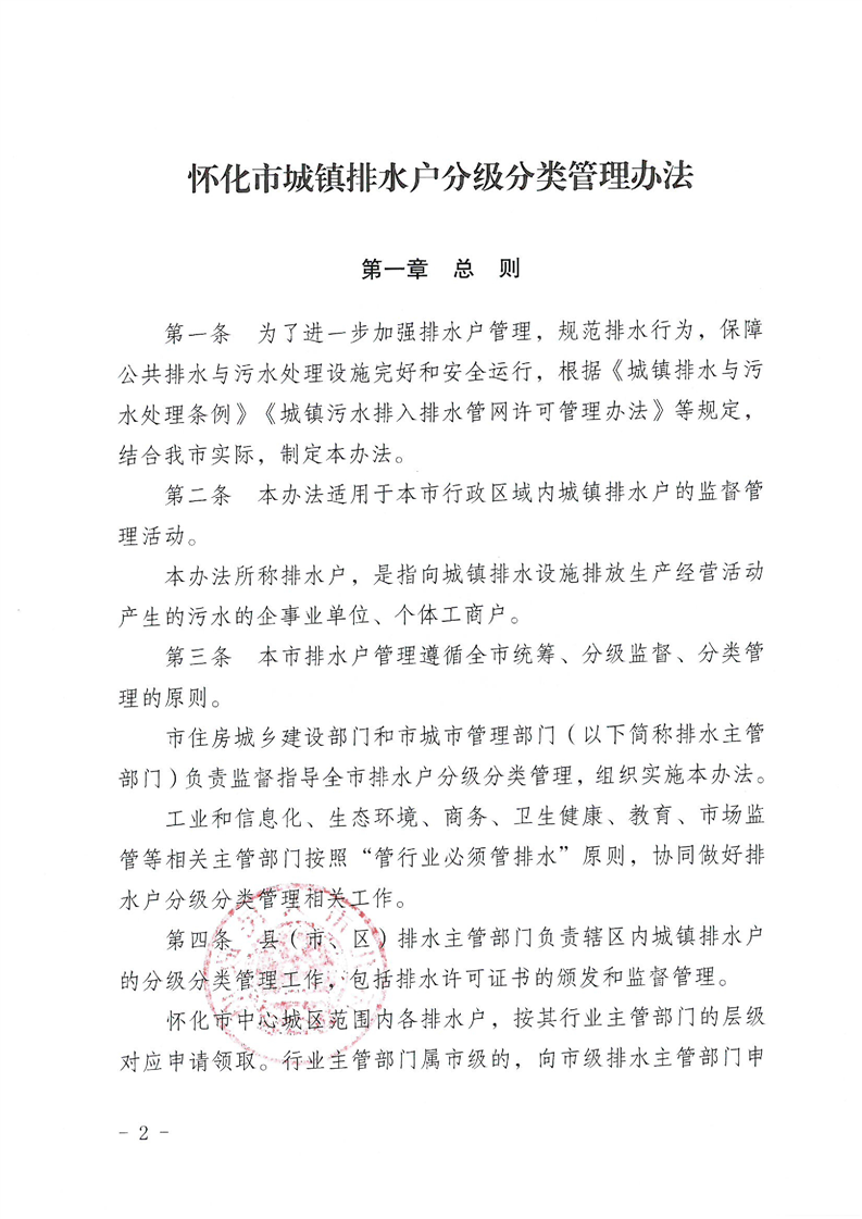 懷化市人民政府關于印發(fā)《懷化市城鎮(zhèn)排水戶分級分類管理辦法》的通知