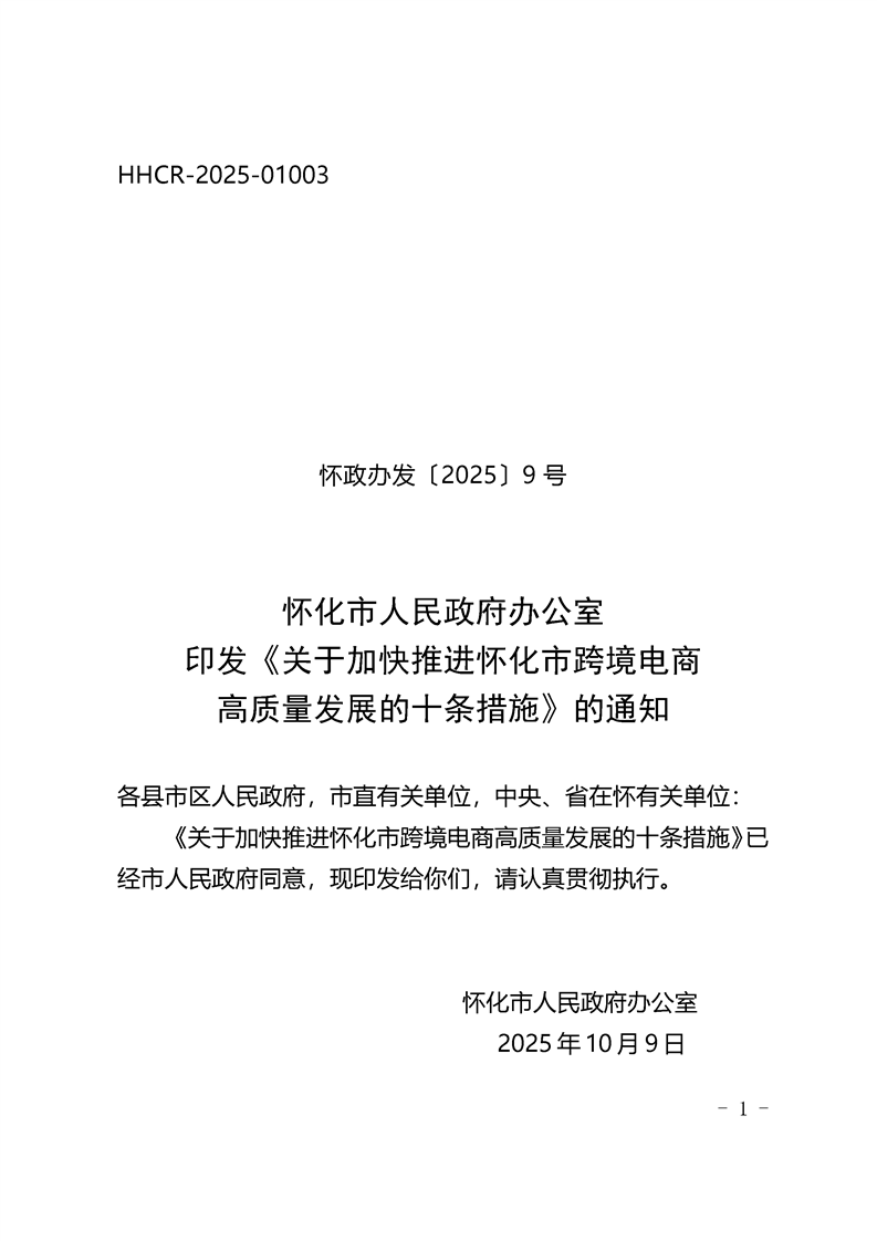 索引號:431200/2025-029124 文號:懷政辦發〔2025〕9號 統一登記號:HHCR-2025-01003