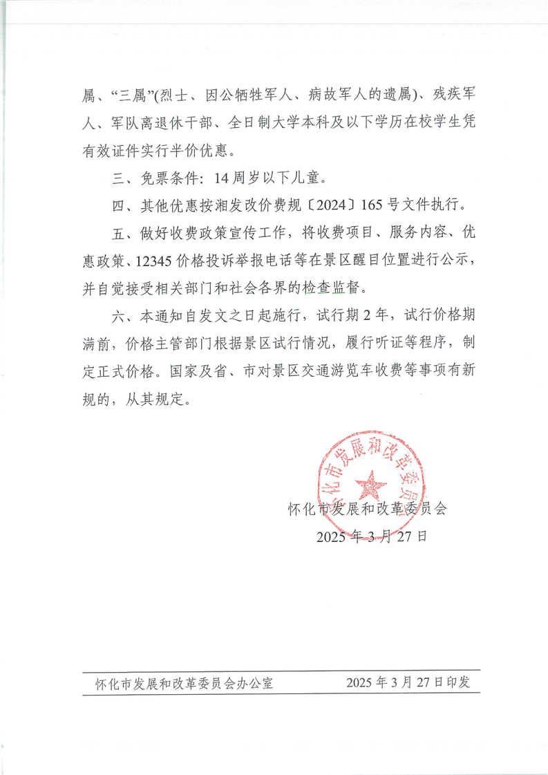 索引號:431200/2025-011635 文號:懷發改價規〔2025〕4號 統一登記號:HHCR-2025-02003