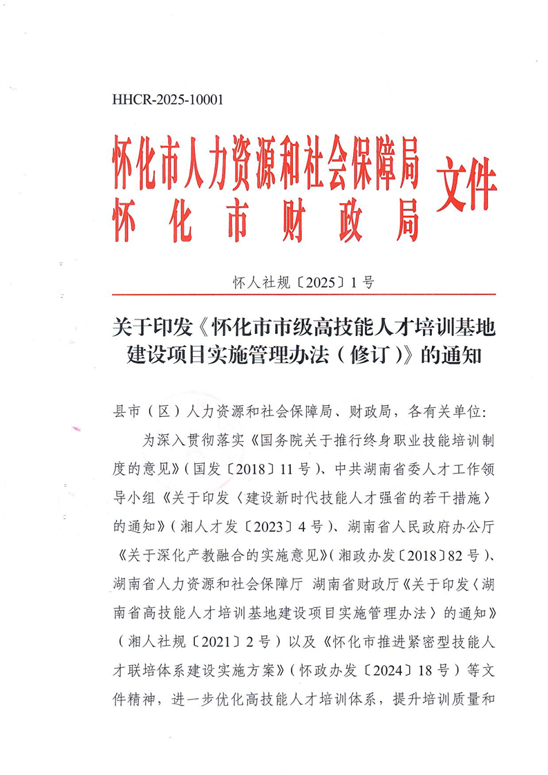 關(guān)于印發(fā)《懷化市市級高技能人才培訓(xùn)基地建設(shè)項目實施管理辦法(修訂)》的通知
