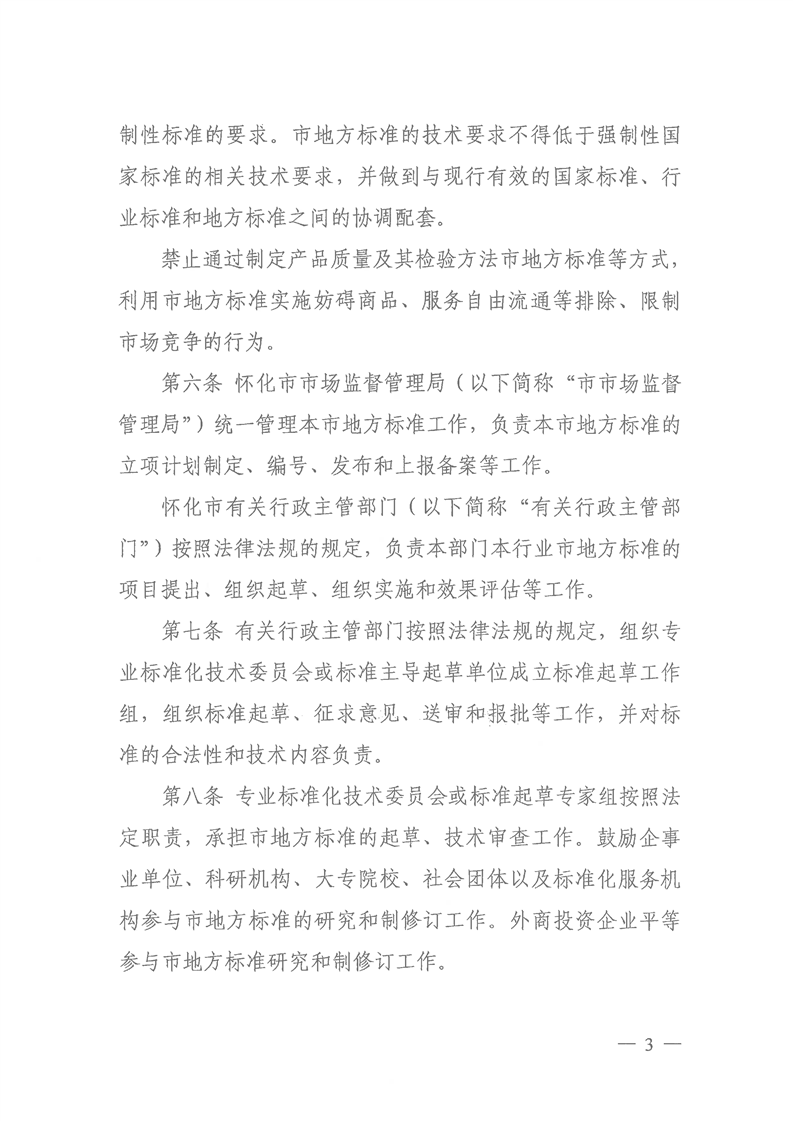 關(guān)于印發(fā)《懷化市地方標(biāo)準(zhǔn)管理辦法》的通知