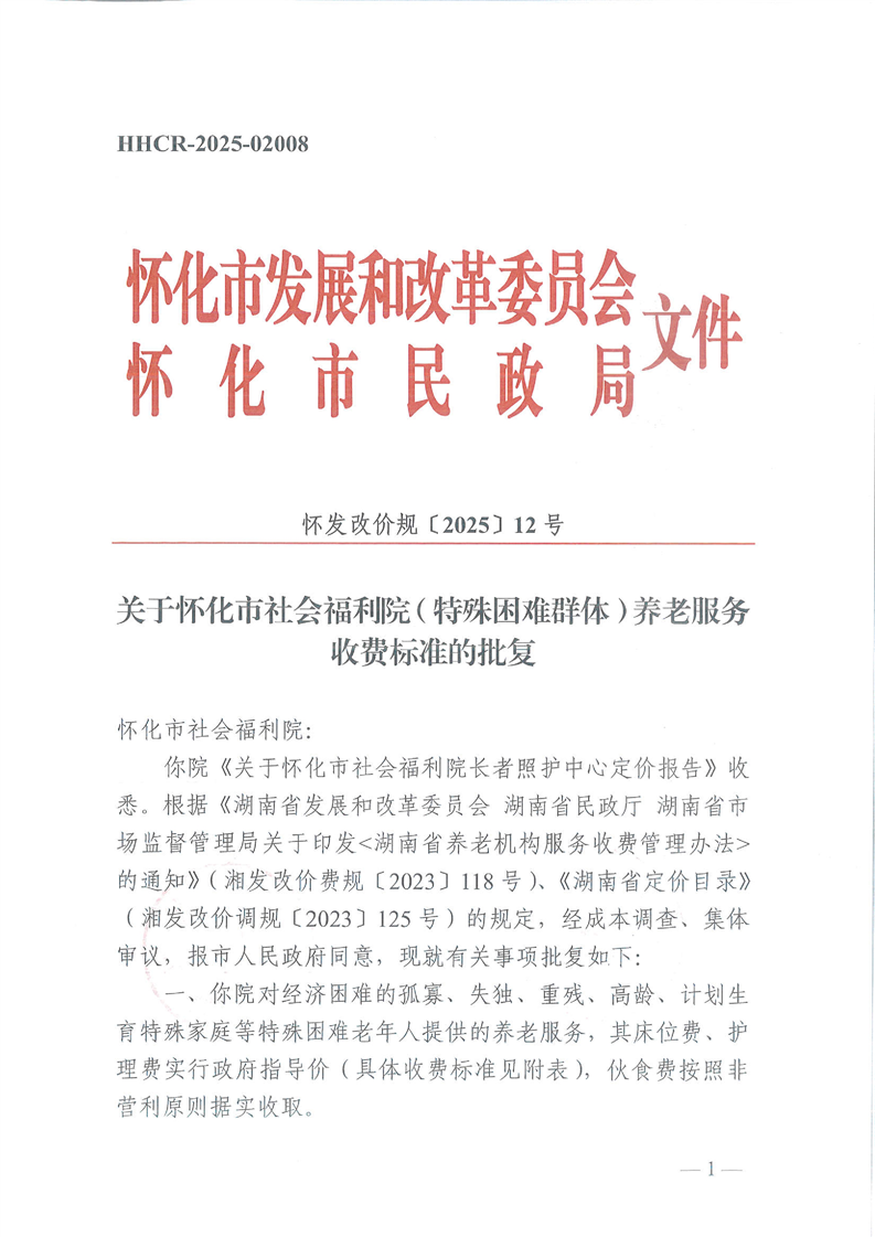 索引號:431200/2025-032363 文號:懷發改價規〔2025〕12號 統一登記號:HHCR-2025-02008