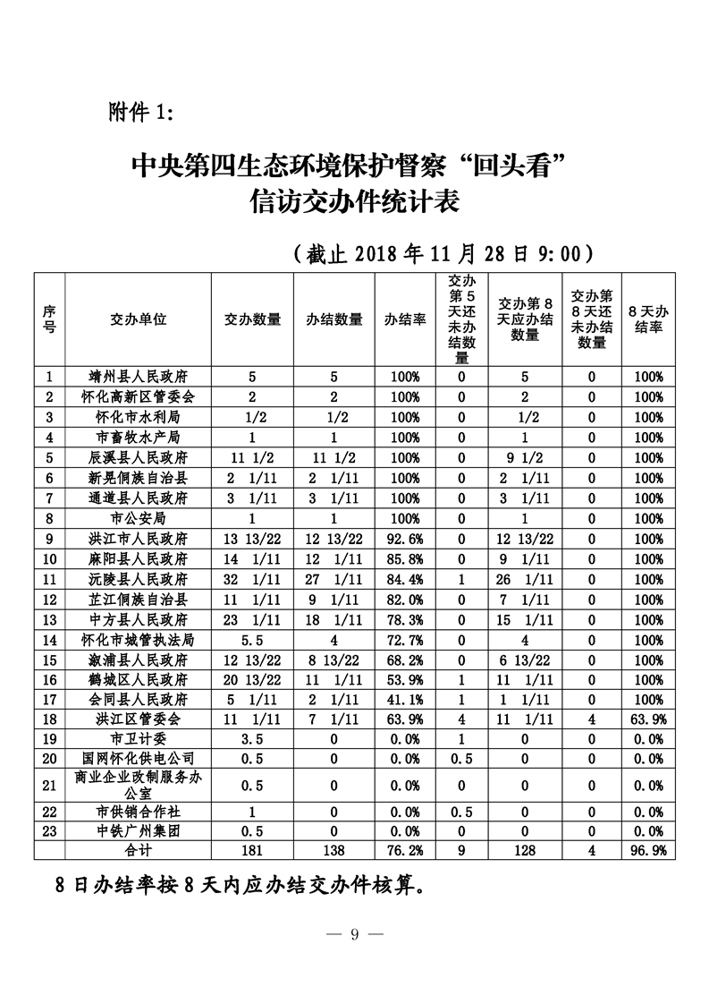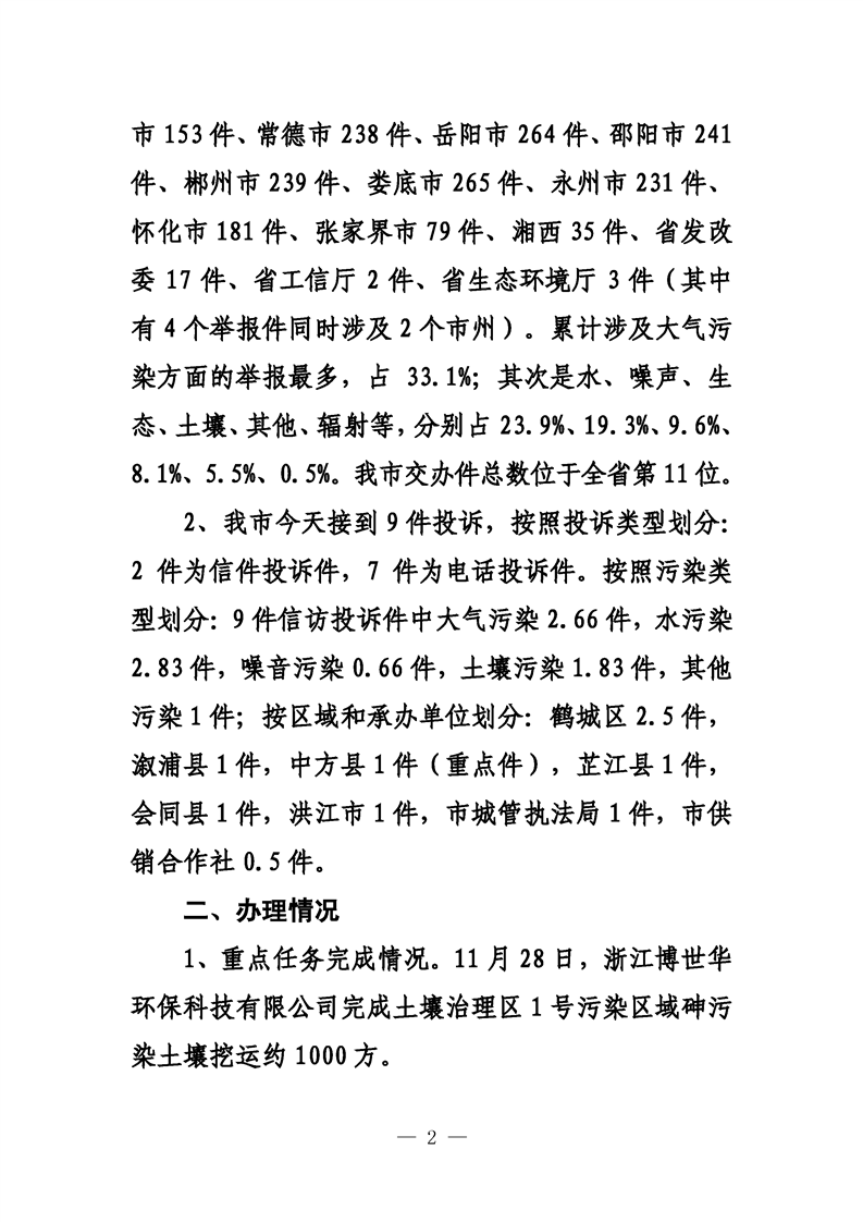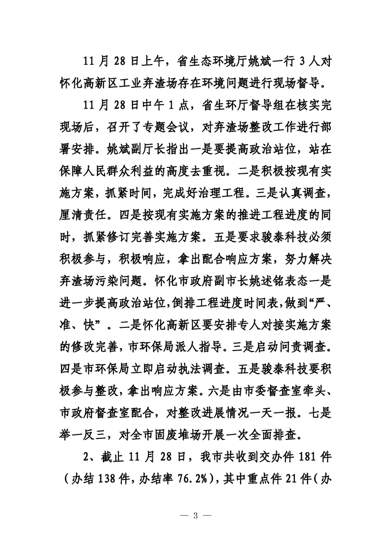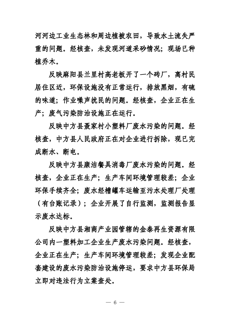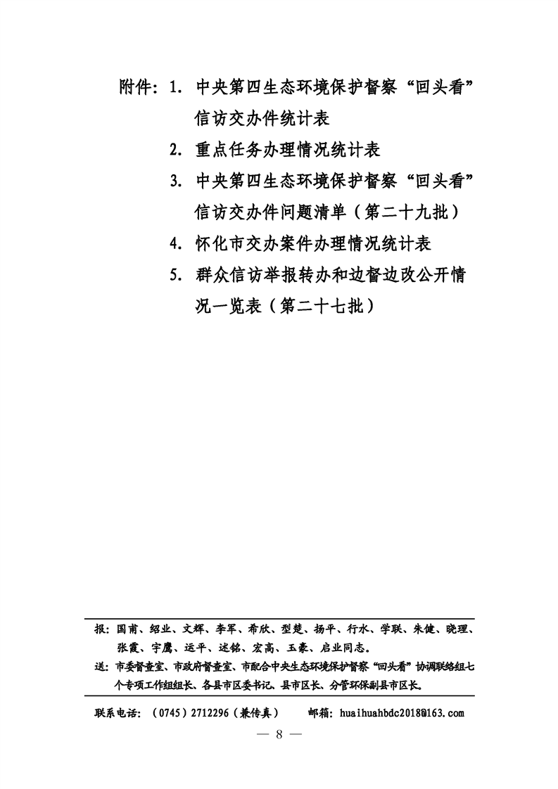 第二十九期 懷化市配合中央生態(tài)環(huán)境督察回頭看工作專報(bào)