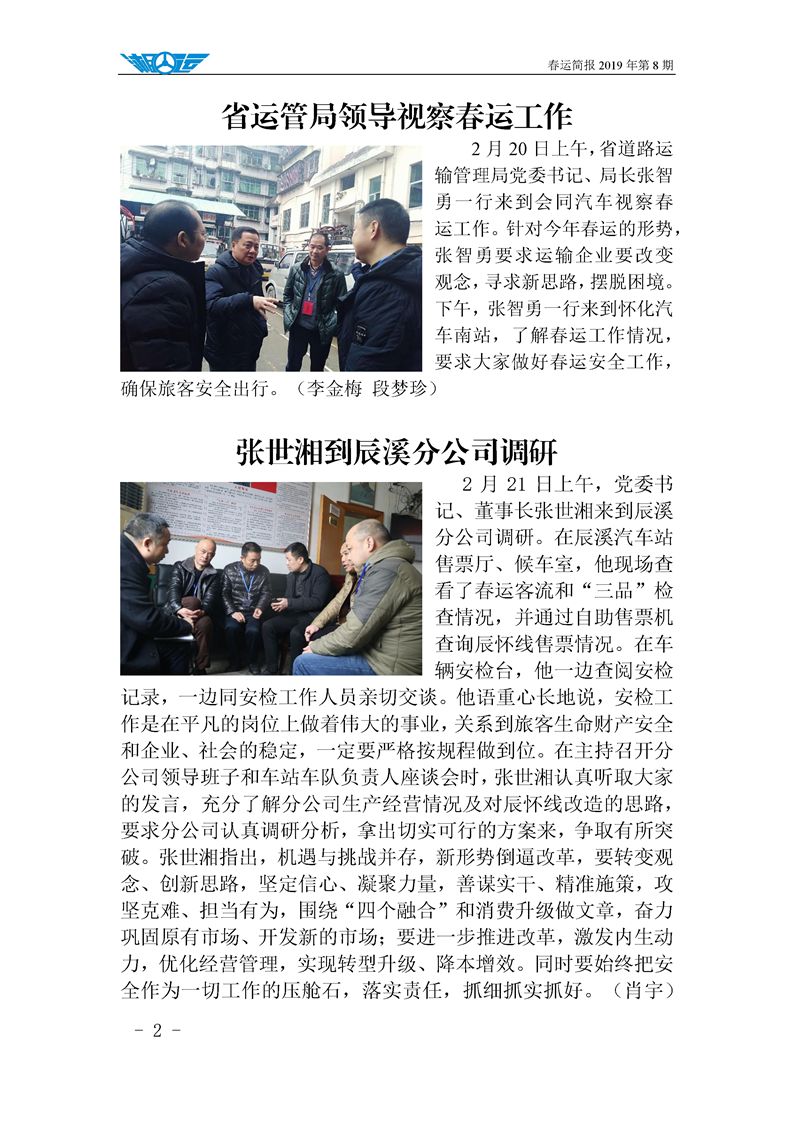 2019年湖南懷化公路運輸集團有限責任公司春運簡報(第八期)