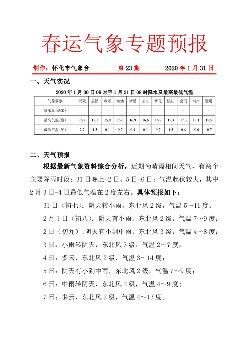 春運氣象專題預報 第23期