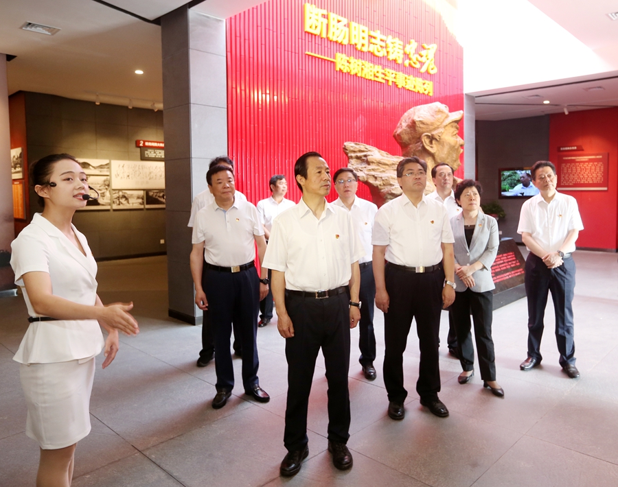 2014年10月,在福建古田召開的全軍政治工作會議上,習近平總書記講述了中國工農紅軍第三十四師師長陳樹湘“斷腸明志”的壯烈故事。來到陳樹湘烈士犧牲地永州道縣,許達哲一行前往道縣烈士紀念園,瞻仰了陳樹湘烈士墓,向紅三十四師烈士紀念碑獻花,并在陳列室中了解了陳樹湘烈士和他率領的紅三十四師的革命事跡。大家深刻體會到,學習陳樹湘“斷腸明志”的故事,就是要進一步堅定理想信念,保持對黨的絕對忠誠,勇于為理想信念獻身、為黨的事業奉獻一切。