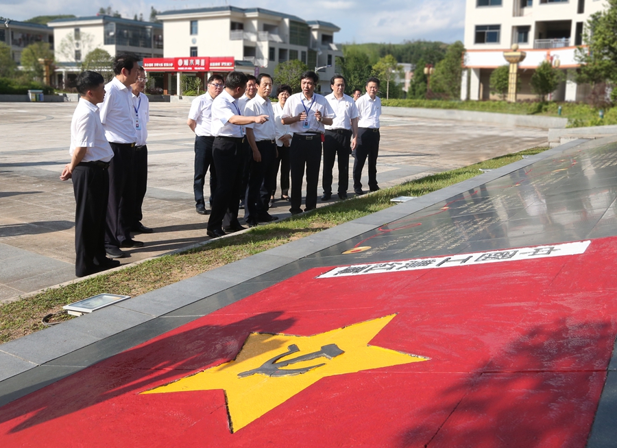 來到寨前鎮,許達哲一行到紅六軍團西征誓師地,瞻仰了誓師紀念廣場等。許達哲指出,紅六軍團突圍西征,為中央紅軍長征起到了偵察、探路的先遣隊作用。我們要充分發揚這種探索開拓精神,甘當偉大事業的“馬前卒”、爭做開拓進取的“急先鋒”。