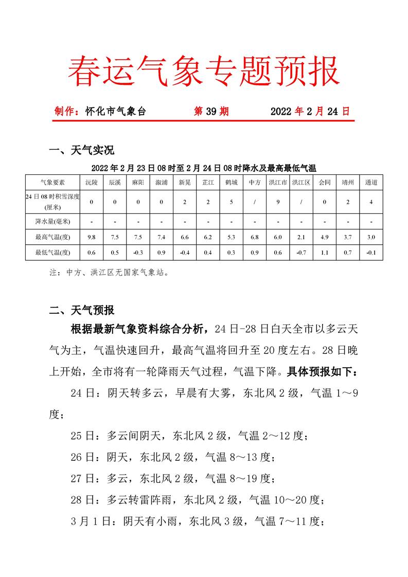 春運(yùn)氣象專題預(yù)報(bào) 第39期