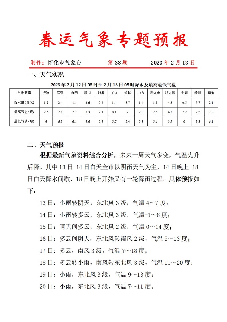 春運(yùn)氣象專題預(yù)報(bào) 第38期