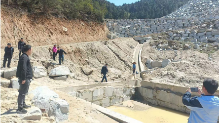 當(dāng)天,牽頭單位洪江市自然資源局組織市水利局、懷化市生態(tài)環(huán)境局洪江市分局、洪江市農(nóng)業(yè)農(nóng)村局、洪江市灣溪鄉(xiāng)人民政府,到舉報(bào)點(diǎn)灣溪鄉(xiāng)云峰村涉事礦業(yè)公司現(xiàn)場進(jìn)行核實(shí)。經(jīng)過現(xiàn)場觀測(cè)勘查和相關(guān)證照及批文收集,確認(rèn)礦山自2021年12月30日采礦許可證到期后一直停采,該區(qū)域臨時(shí)用地手續(xù)、環(huán)評(píng)手續(xù)齊全,沒有占用耕地的情況。場內(nèi)廢水經(jīng)收集沉淀處理后全部循環(huán)使用,修建有一座雨水收集池和應(yīng)急處理池等循環(huán)設(shè)備用以實(shí)現(xiàn)雨污分離。工作人員和當(dāng)?shù)厝罕娨黄鸬匠恋沓亍⒂晁鏊诩案浇r(nóng)田實(shí)地查驗(yàn),發(fā)現(xiàn)沉淀池出水較清澈,無泥沙,附近農(nóng)田和雨水出水口水流清澈,沒有泥沙流入農(nóng)田,但在棄土場底部附近有約十多平方米旱土被少量的泥沙掩蓋。當(dāng)即對(duì)企業(yè)負(fù)責(zé)人提出整改要求,目前涉事企業(yè)組織人員按照方案已完成對(duì)棄土場底部附近旱土泥沙的全面清理,共清理泥沙約2m3,疏通水渠約5米,安裝了水閥1個(gè)。