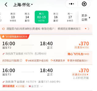 該航線由金鵬航空執(zhí)飛,每周飛行三班,班期為每周二、四、六,來程航班號為Y87579,16:00從上海浦東起飛,18:40到達懷化芷江,回程航班號為Y87580,19:50從懷化芷江起飛,22:10到達上海浦東。具體的航班時間和票價信息已在各大售票平臺公布,旅客可根據(jù)自己的出行計劃提前購票。