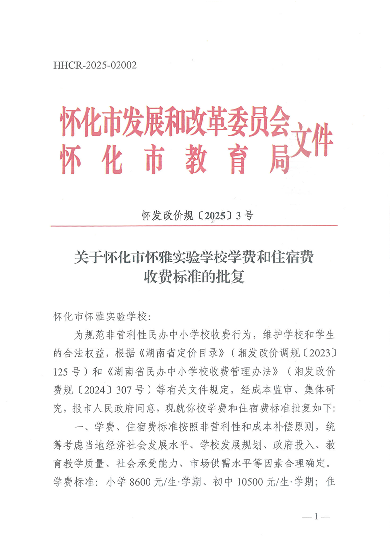 關于懷化市懷雅實驗學校學費和住宿費收費標準的批復